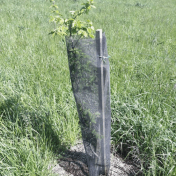 Les distances de plantation et le choix des protections ont été pensés pour faciliter la circulation des animaux et limiter l’entretien. Le pâturage ovin et bovin participe à la gestion de l’enherbement autour des jeunes arbres.