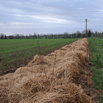 Le projet intègre aussi la reconnexion de haies existantes afin de reconstituer un maillage bocager cohérent et fonctionnel, améliorant la circulation de la faune et la résilience écologique des parcelles.