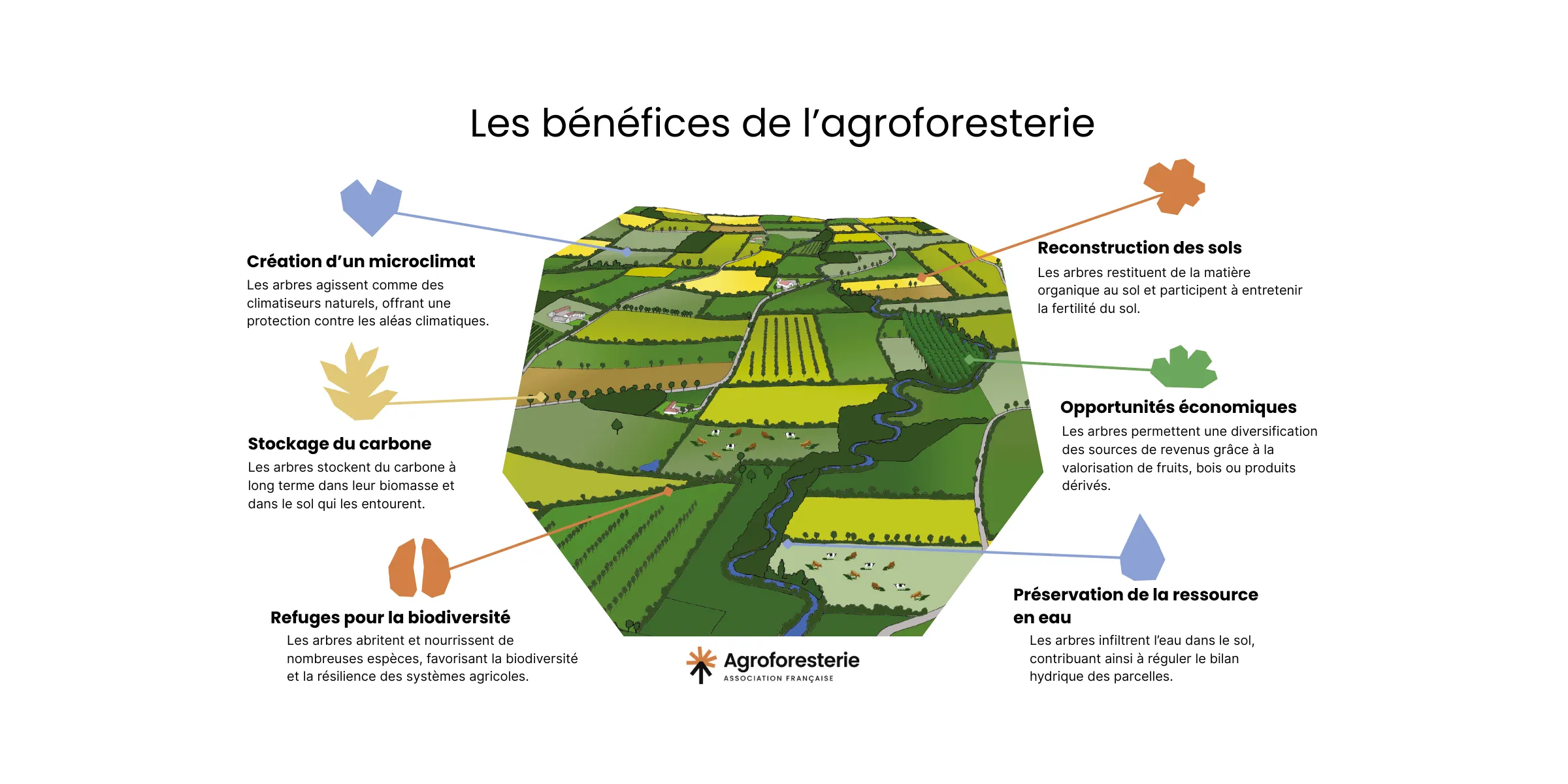 Loin d’être une simple plantation d’arbres, l’agroforesterie transforme profondément la manière de produire : elle relie production agricole, gestion durable des ressources et résilience des territoires.